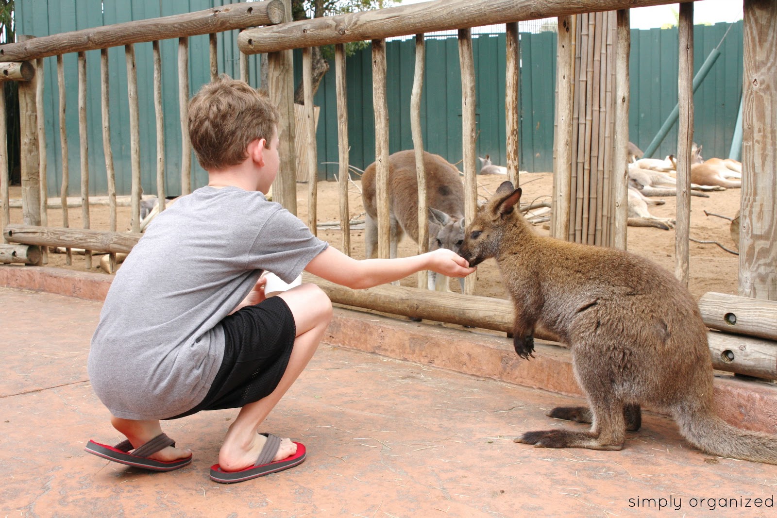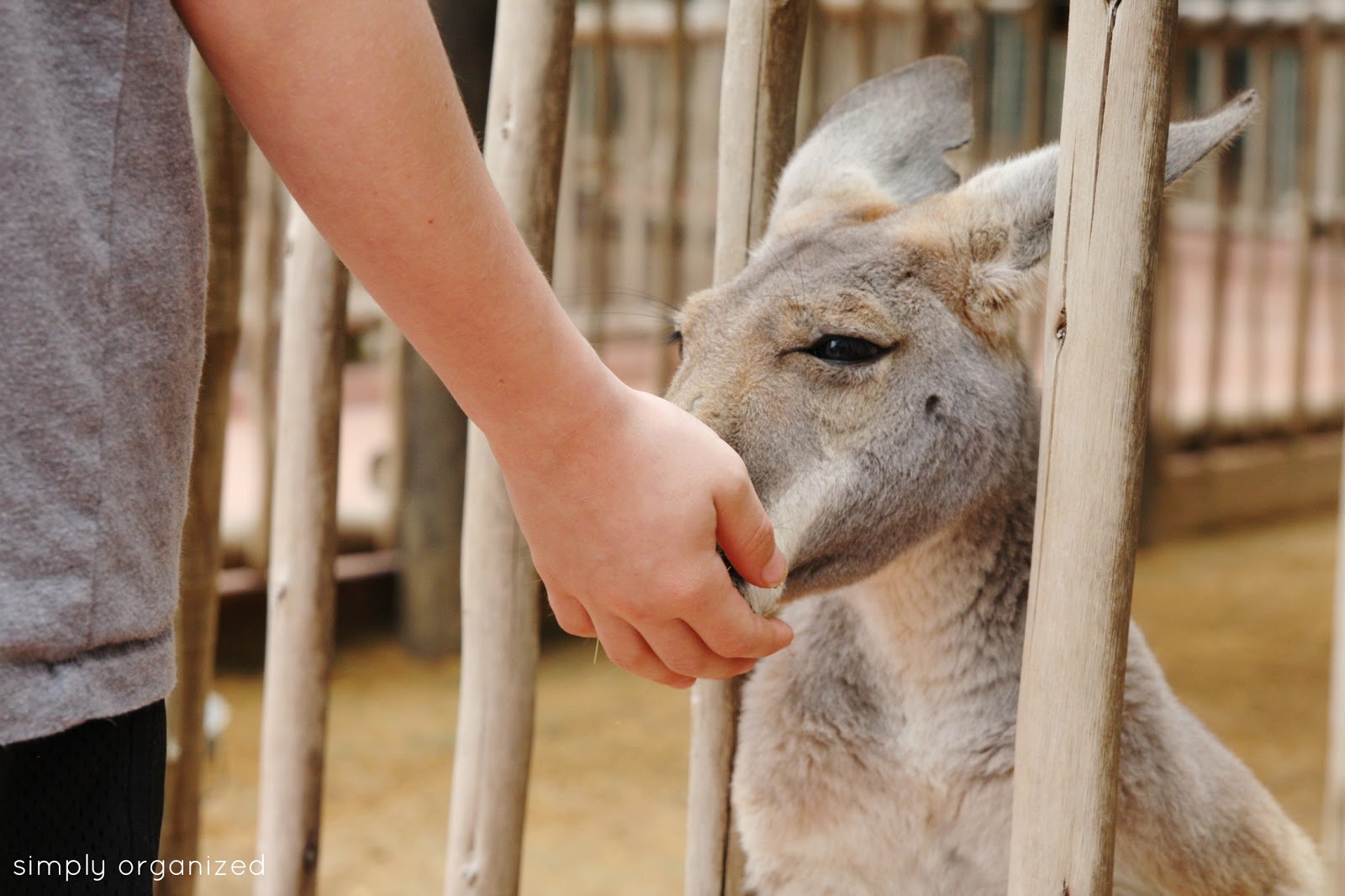 He is our animal lover and would not be shocked if he ends up being a veterinarian or a zoologist…Anything involving animals and he will be living a great life. The joey’s are small enough to walk through the gate slats to interact with you (so awesome hugging a kangaroo!) while the adults were contained behind the fence…