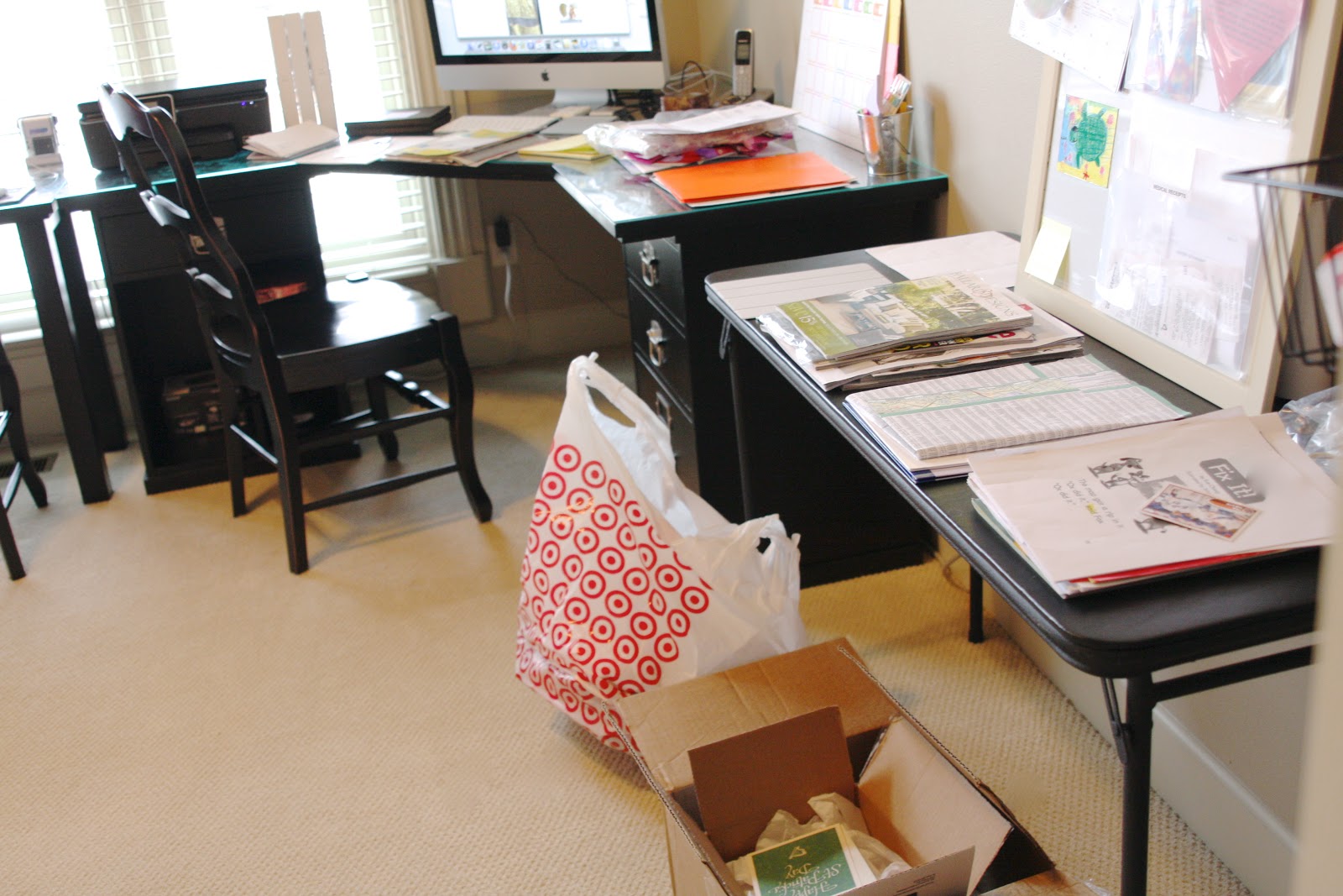 But don’t feel too badly for me. I had it quickly sorted and organized with my pile method. When we get home from an extended time away, the first thing I do is make sure anything paper related or things that need my attention make their way to the office. When, when I have a good hour, I head into the office and sort it all out. Here’s a closer look at my piles…