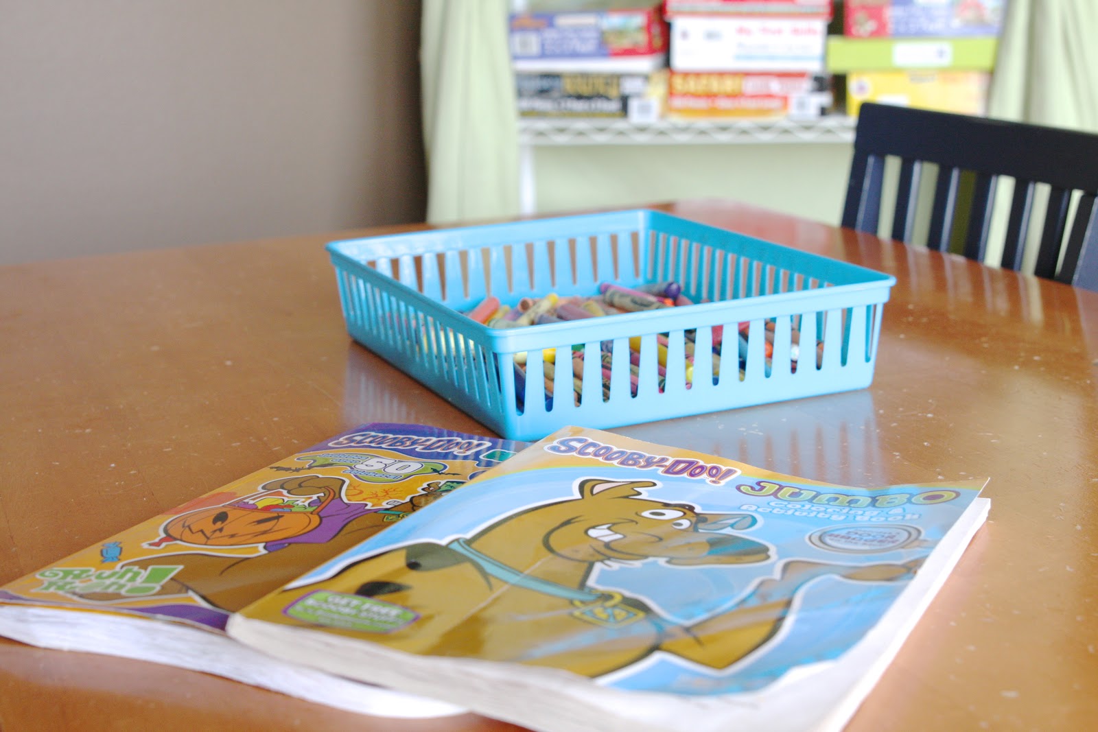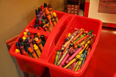 May not look too bad, but it annoys me. I knew I had to figure out a better container for the crayons….So gang, we had an organization mystery on our hands.
