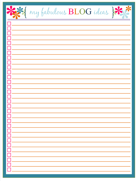 Jen at i heart organizing always creates and shares colorful printable’s. Here’s a great way to jot down all of those blog ideas that are floating around in your head…