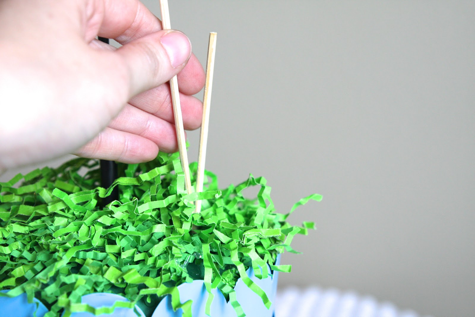 And just played around until i had them placed the way I liked. A good tip when adding the sticks to the pail is to use another empty skewer to help you guide in your items…