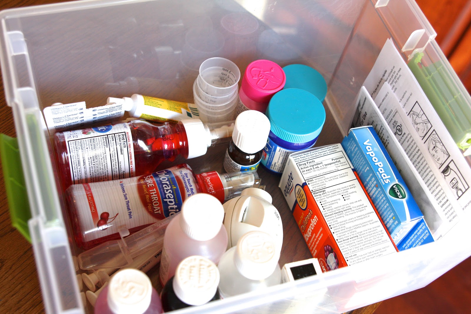 Great idea! Love the idea of using bins to sort medicine into different categories!