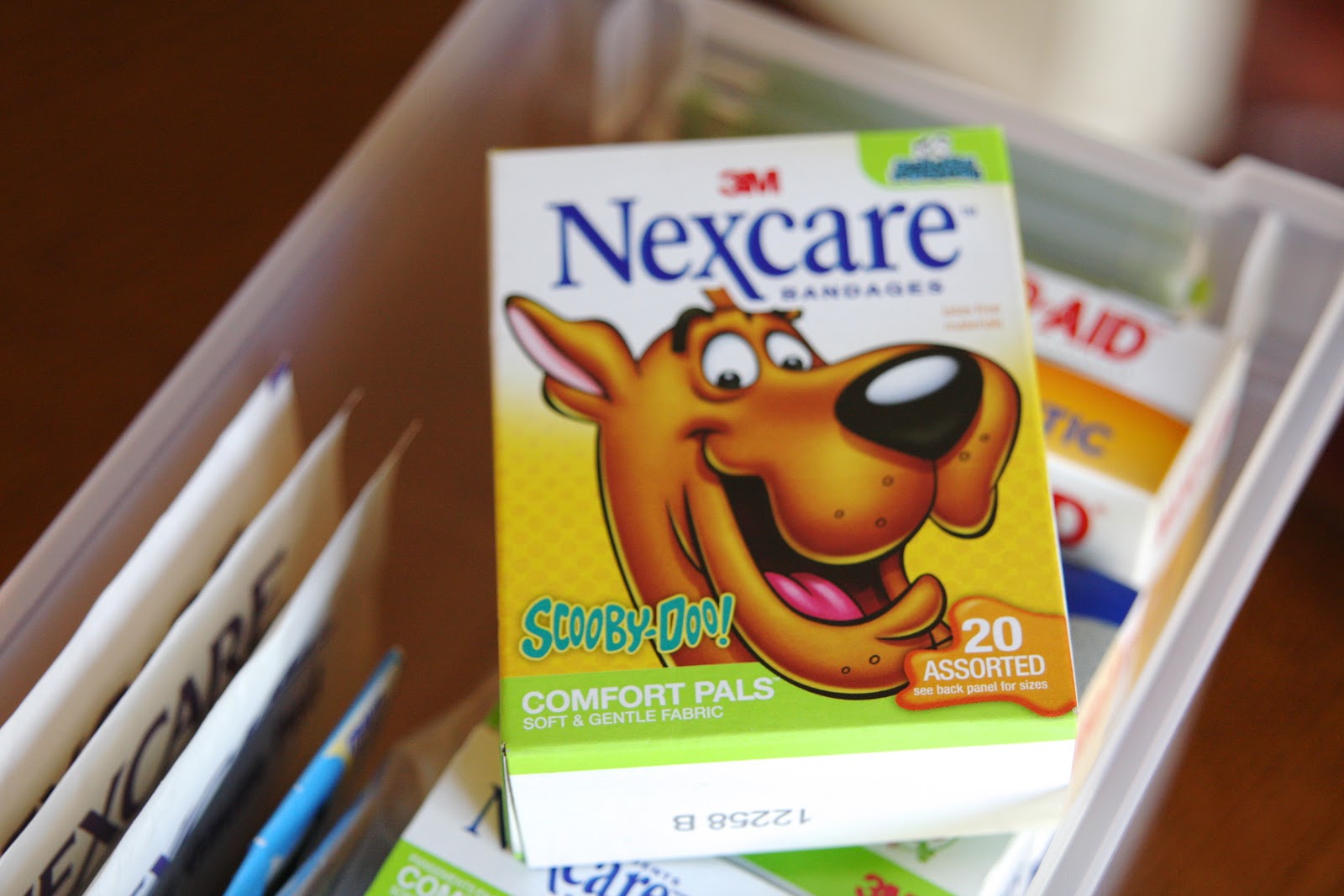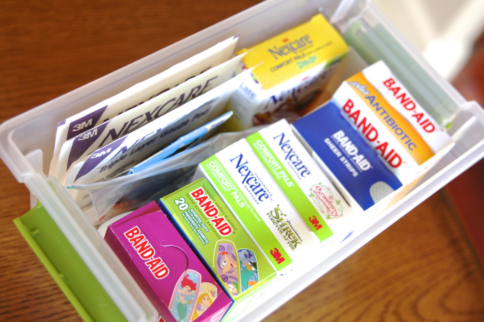 And a bin for band-aid’s, gauze pads, and other boo-boo patching items…