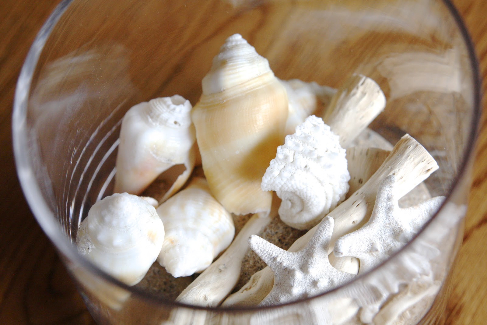 And the shells in the smaller glass vase are a mix of potpourri and the shells we brought home from our spring break trip to clearwater, Florida…