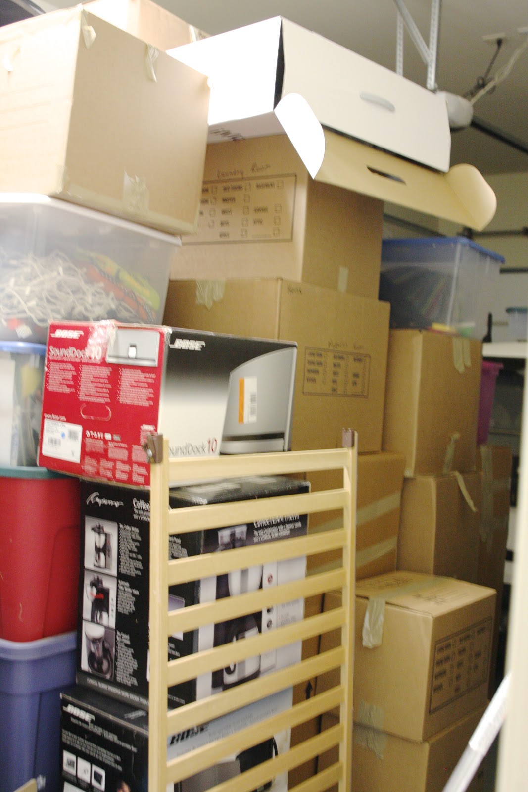 First of all, let me say that I can’t believe I managed to easily locate some of our spring decor in our storage space. We are using the 3rd garage stall in this house to store all of the items we didn’t need for the 6 months we are renting. Here’s a look into the storage space…