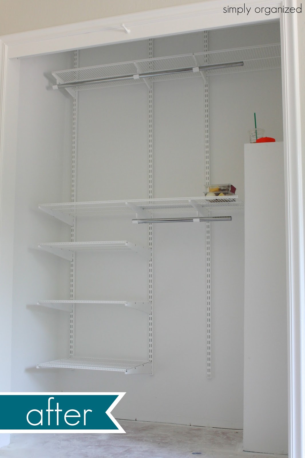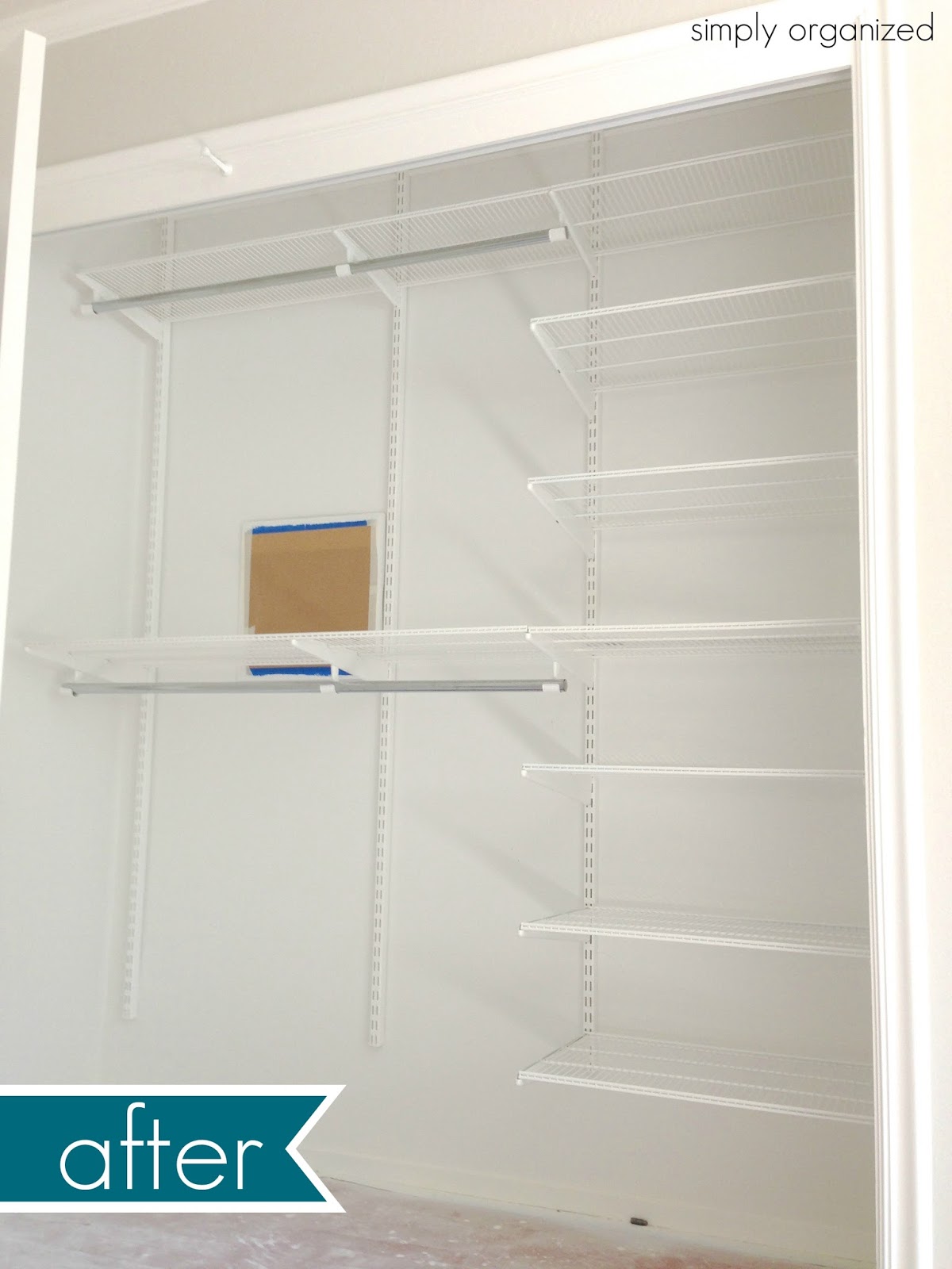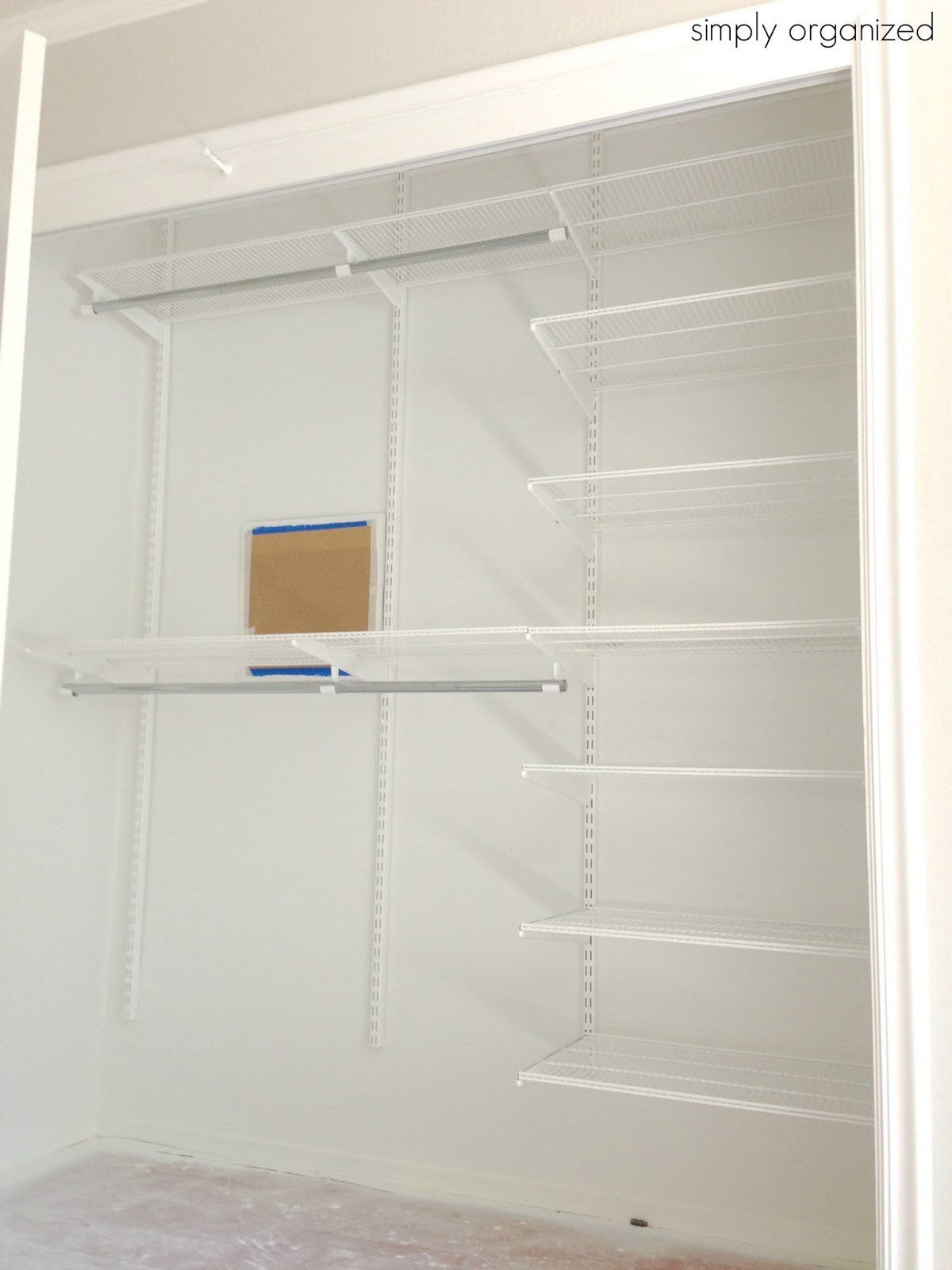 One of the first hands-on organization projects on my list at the new house? Installing closet organizers. I couldn’t wait too. Why? because it wasn’t only the install of closet organizers, but the install of desperately needed closet organizers. It’s simply amazing to me what a fresh coat of paint and a beautiful sparkling new closet organizer can do for a closet…And for my spirits.