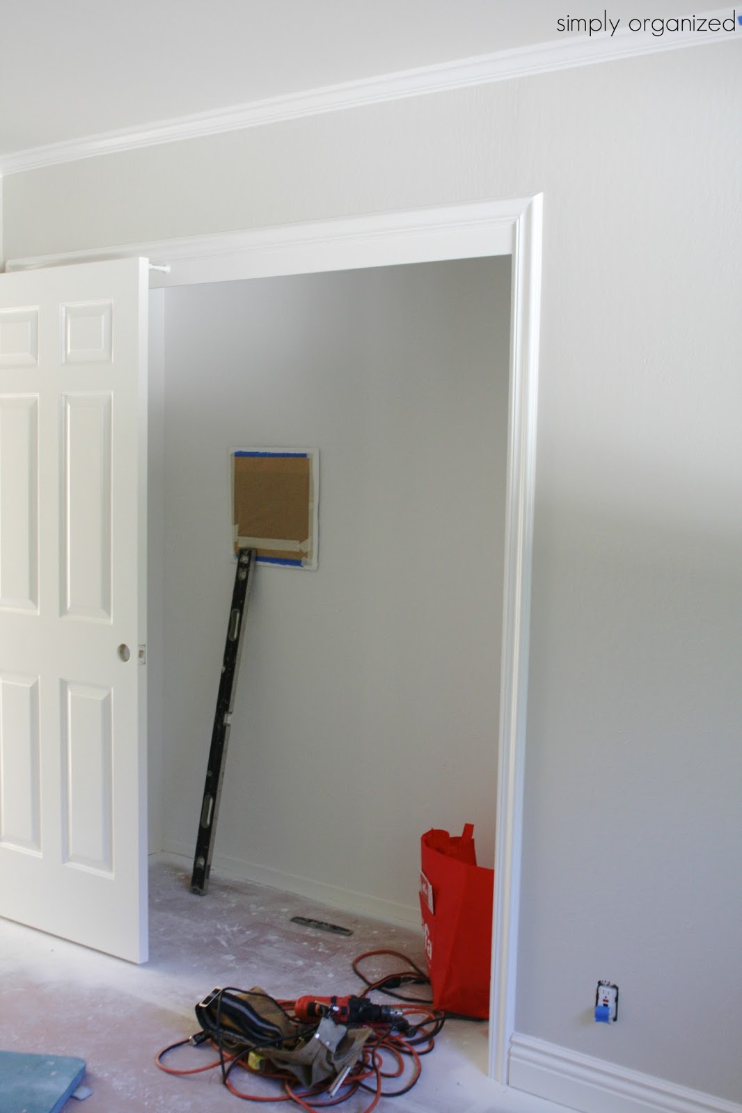 While I was back home designing new closets, my painter was busy demo’ing the old closets, patching holes, and painting. I loved seeing these blank canvases last week…