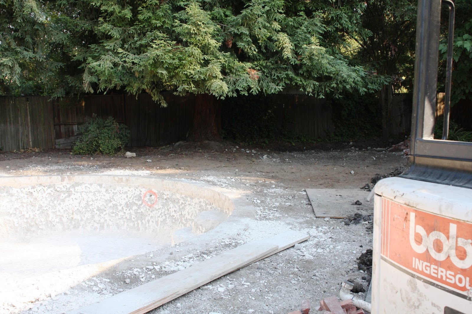 The backyard is truly a blank canvas with all of the concrete gone. Next week when I’m in town, I’ll be working with our pool contractor on early plans for a BBQ area on the right side of the yard/pool and a fire pit and bench in the back corner of the yard…