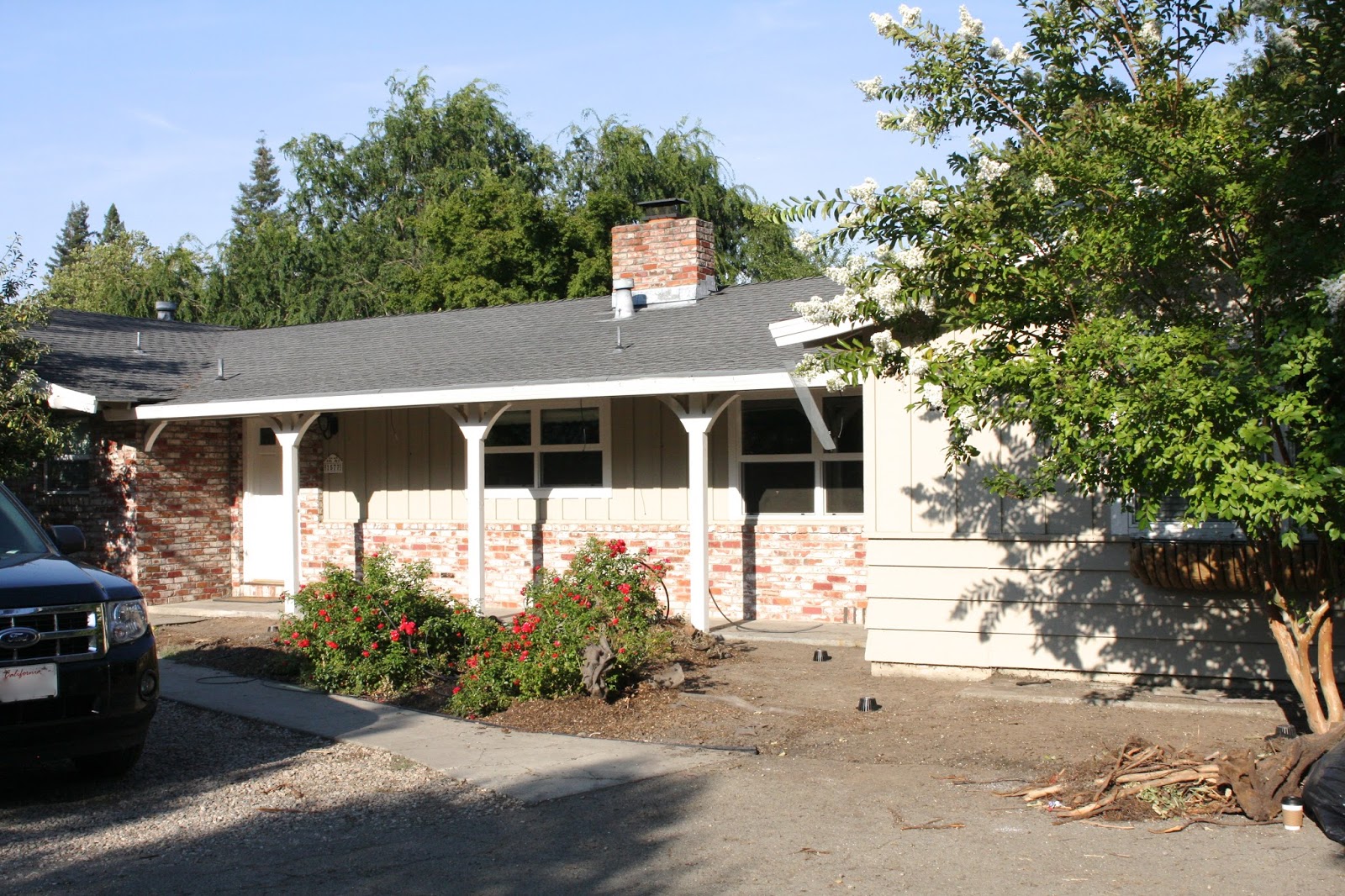 Eventually, this entire front yard will be landscaped, paved and that pad of grass you see waaaaay off in the distance (beyond the glamorous port-a-potty and redwood tree) will be the new home of a swing set and sand box.