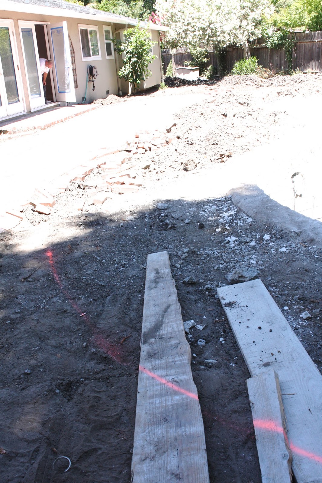 We’re going to use the existing brick along the back of the house to create a completed walkway. The bricks will be formed around the edge of the concrete. And there is no shortage of bricks to do this…