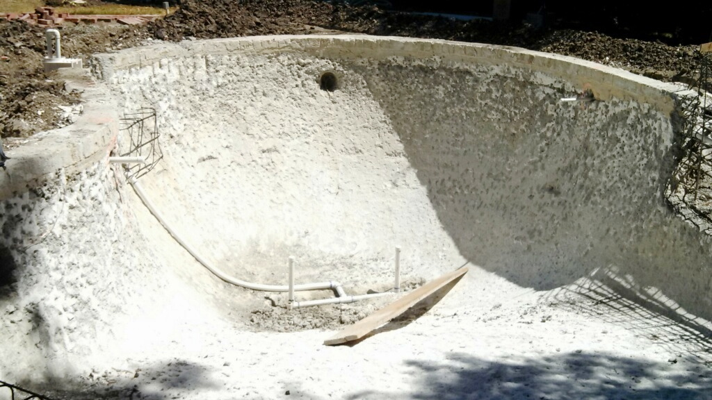 Yup. Gunite. Who knew there was such a thing? As soon as my pool guys said “we’ll be guniting while you’re at the house” I immediately hopped over to google to investigate. Basically, gunite is a process of spraying concrete into the pool to make the inner form.