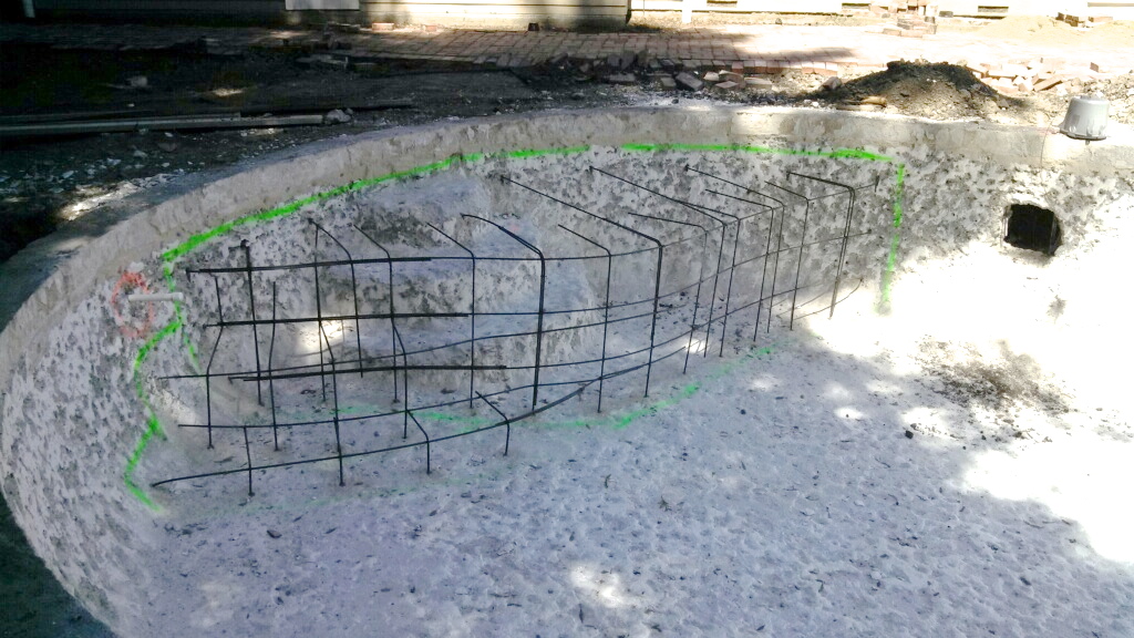 They also added the rebar to create new steps and a shelf. Here is the shelf and 2 steps on the right end of the pool…