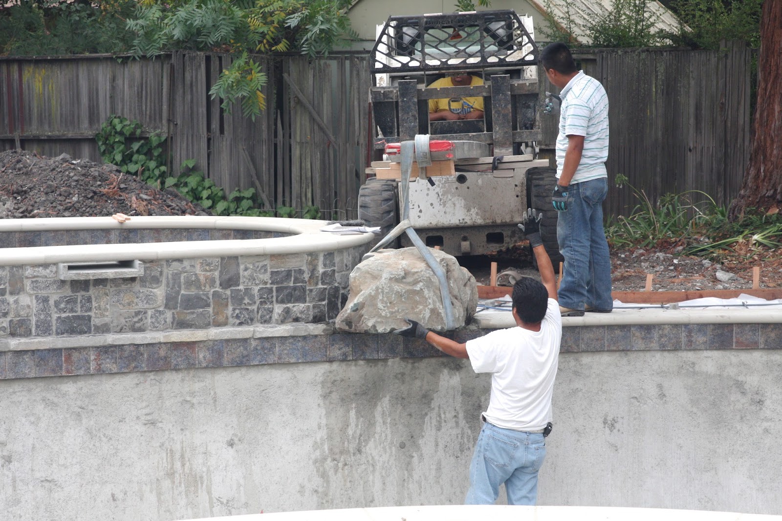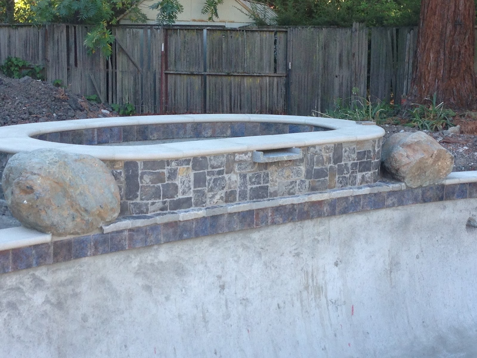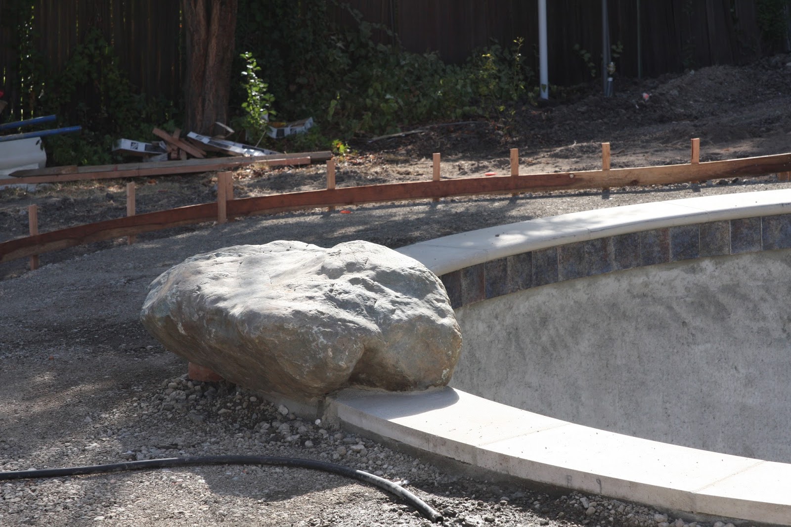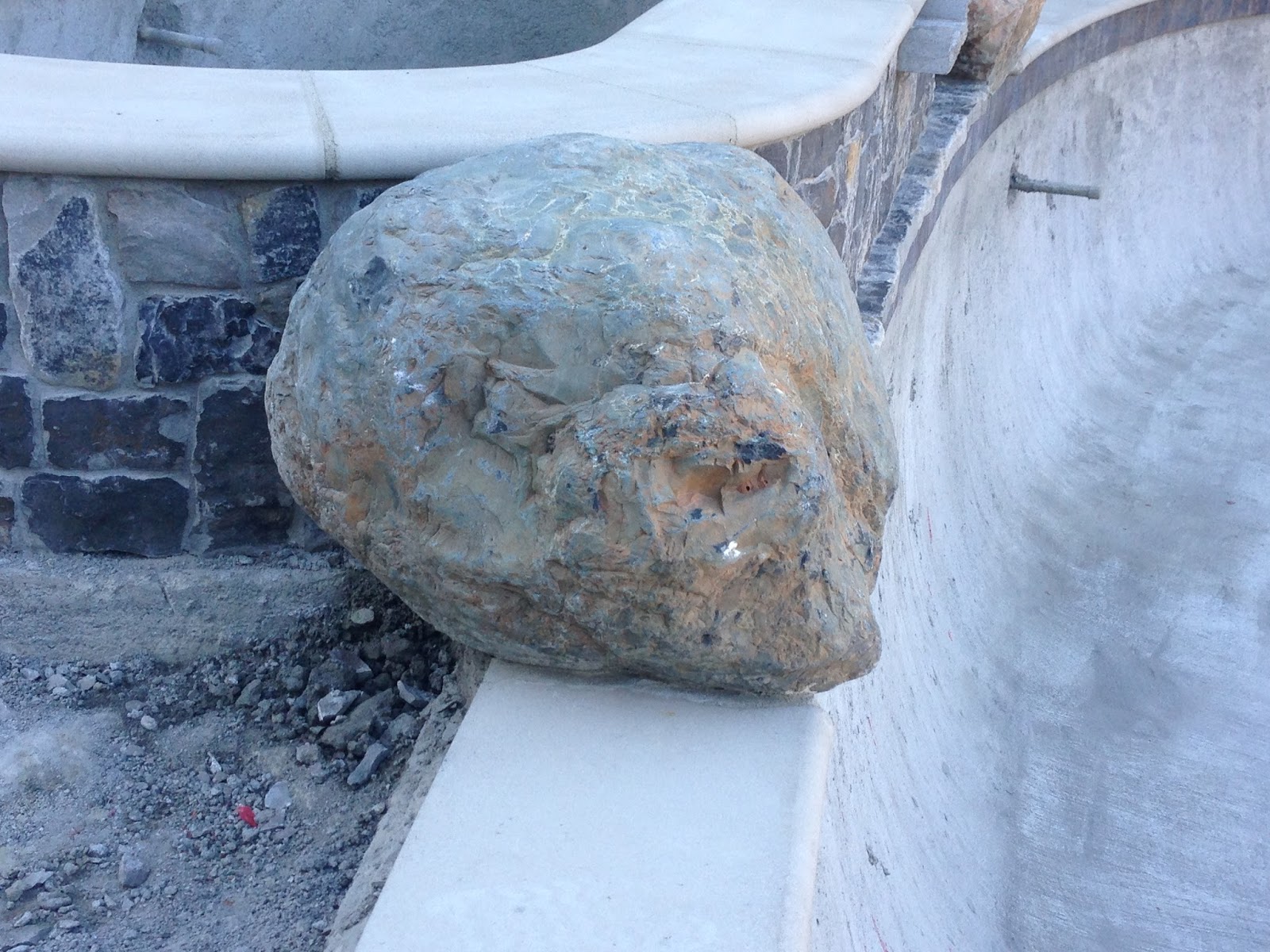not only flat on one side, but two. A quick call to our pool company and the boulder was replaced a few days later, before the cement set permanently. Not a big deal!