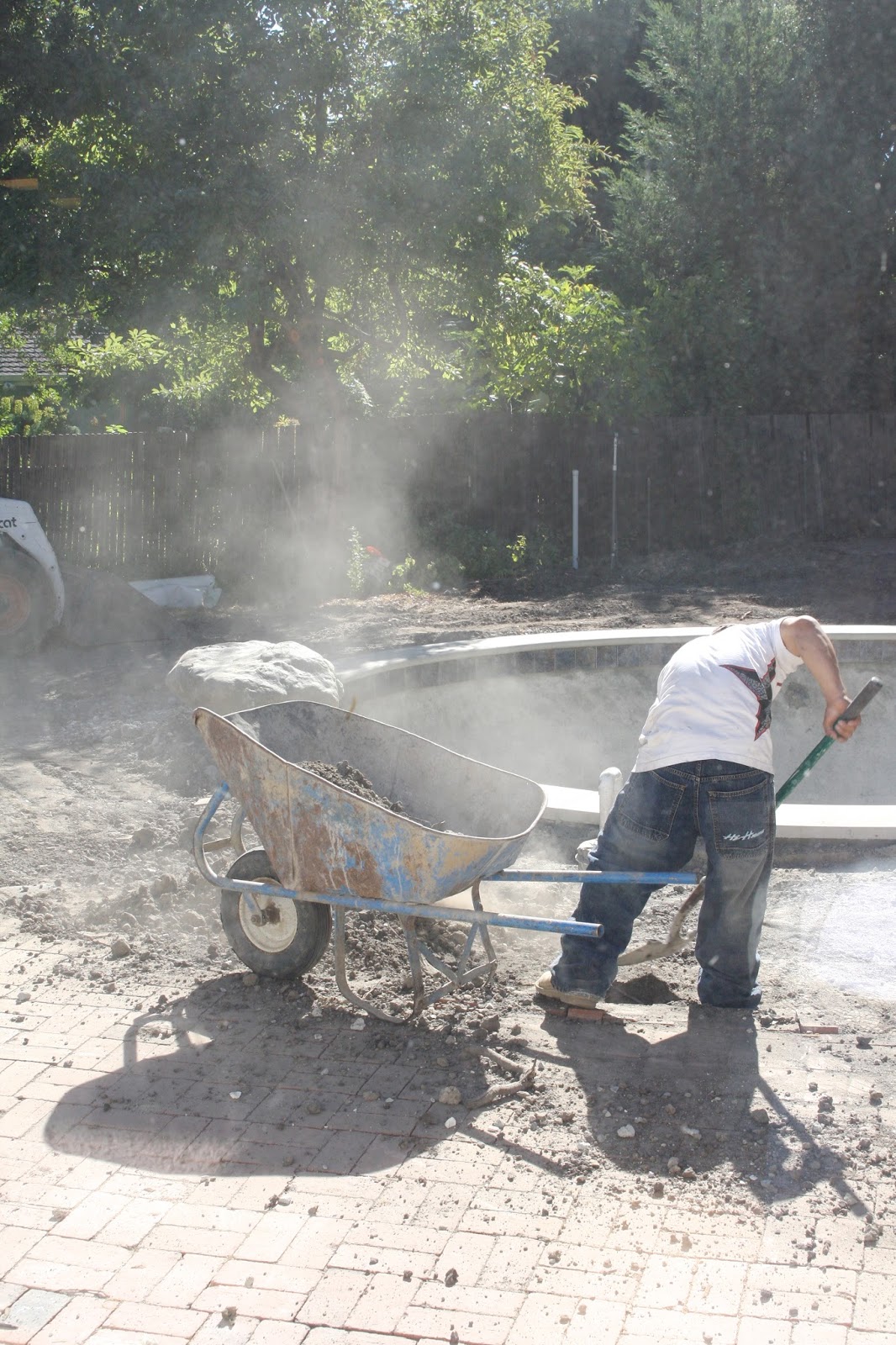 Then came 3 loooooong weeks of nothing. Although I was sad to see an empty backyard where no one was working, the timing of the break couldn’t have been better. It would have made for an even more challenging move-in process. Imagine adding a swimming pool crew and their vehicles/equipment to the mix…