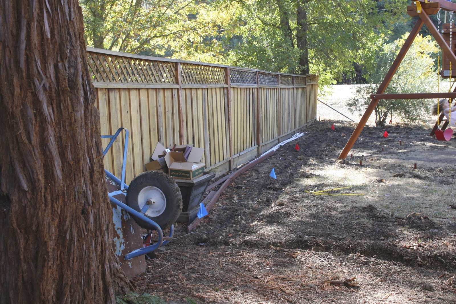 Finally the black wire in installed. This is easily done by nailing it to the backside of the fence. I didn’t want to see the black nails on our side so it worked well to nail it onto the back side. There’s a lot of nails but they blend in well…