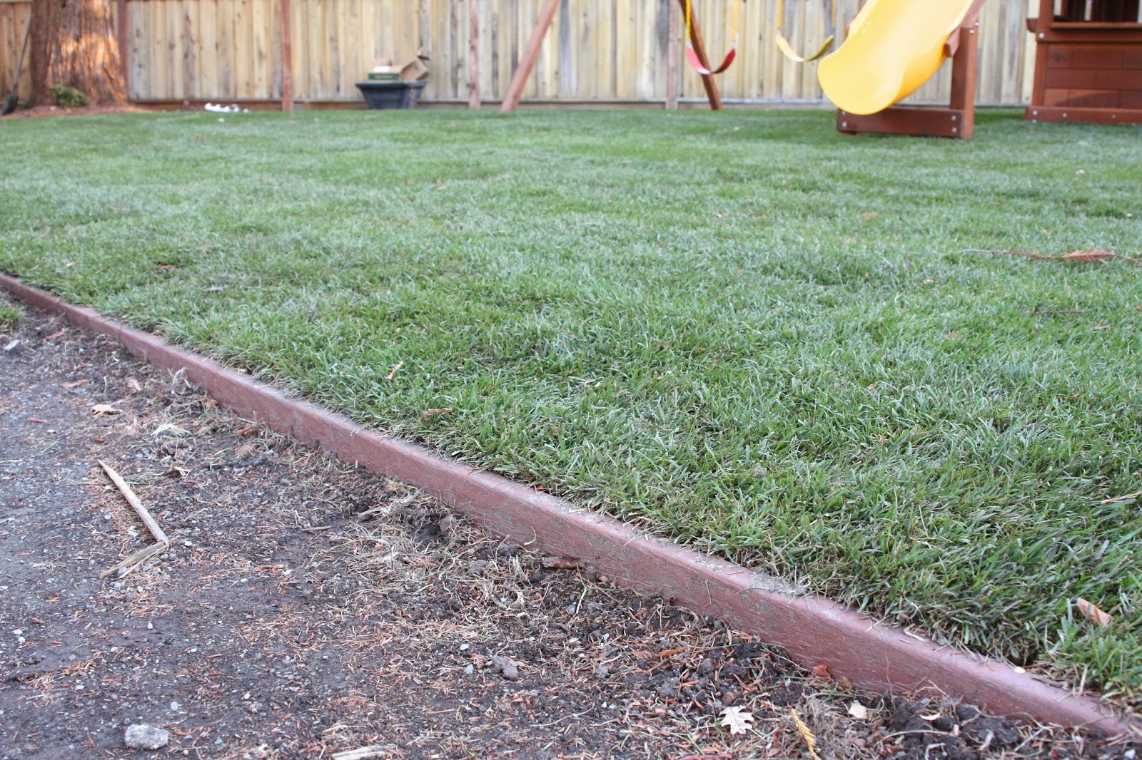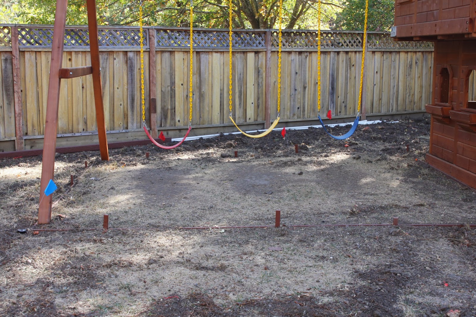 This was an issue because I didn’t want to lay sod under the swings only to have 3 sets of feet create wear and tear. Instead of laying sod under the swings we created a border…
