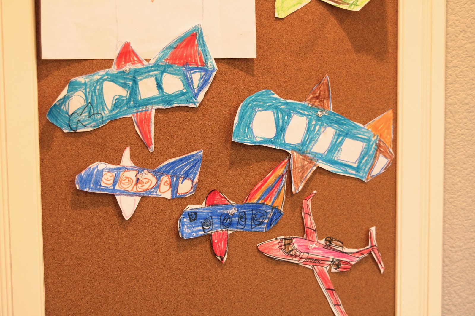 Before pinning up that great art work, I added each of the kids first name initials to the upper left corner. I found these at Michaels…