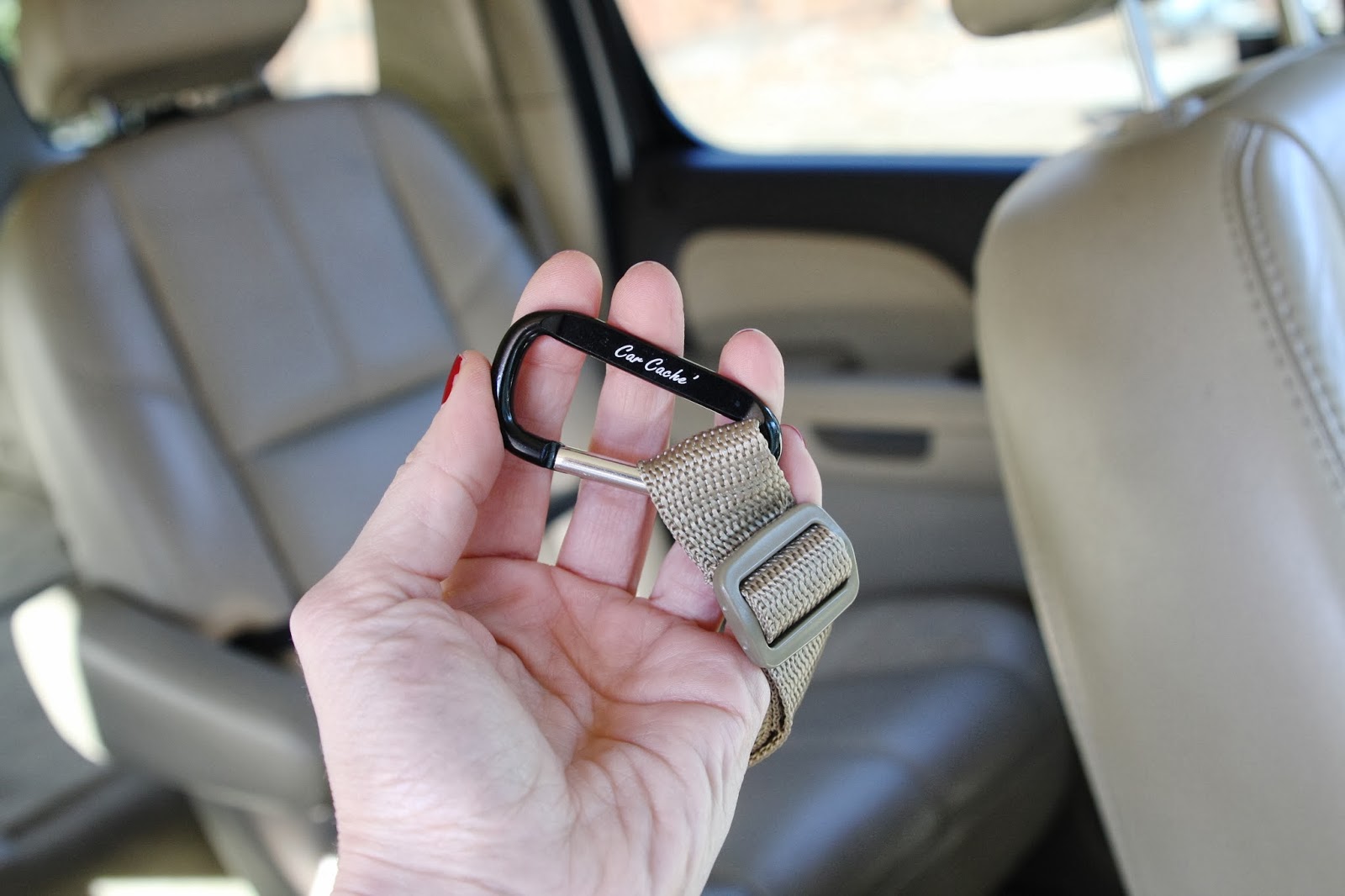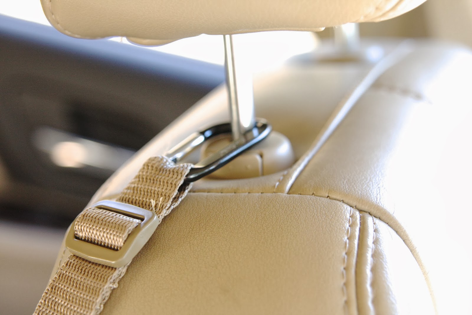 I had been using a simple s-hook from The Container Store to hang my purse on the passenger seat. Recently, I was introduced to a new revolutionary handbag storage solution for your car and couldn’t wait to try it, share it with you…and offer TWO of them as a giveaway!