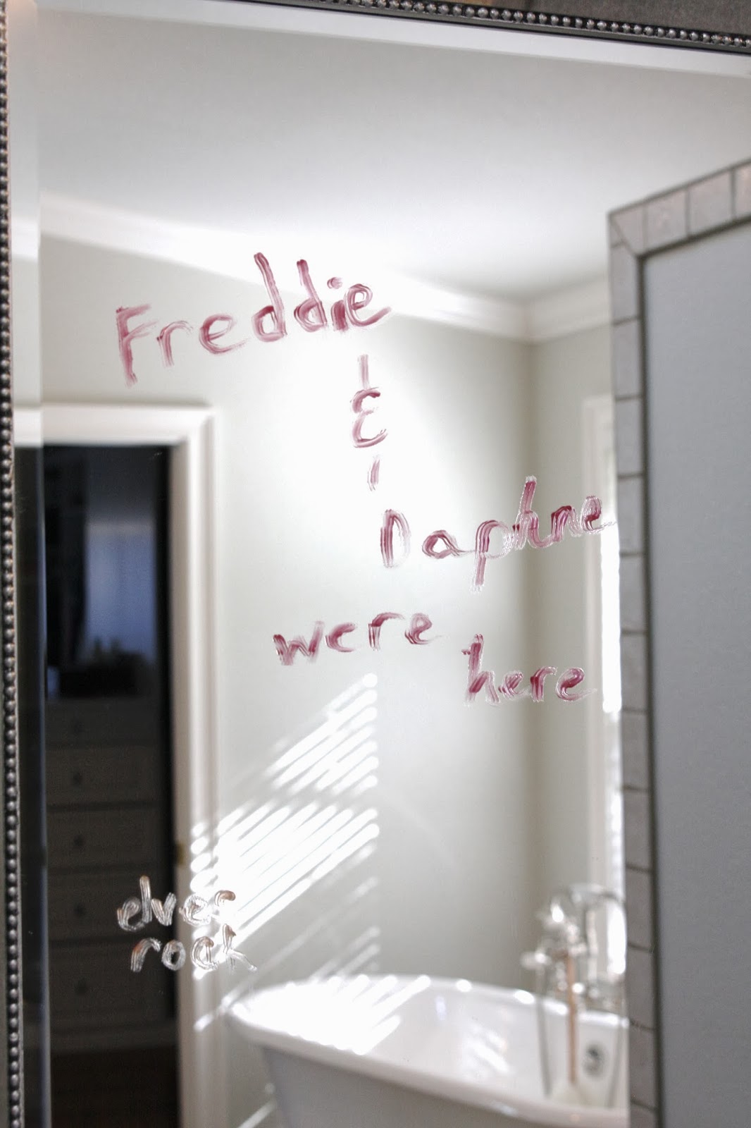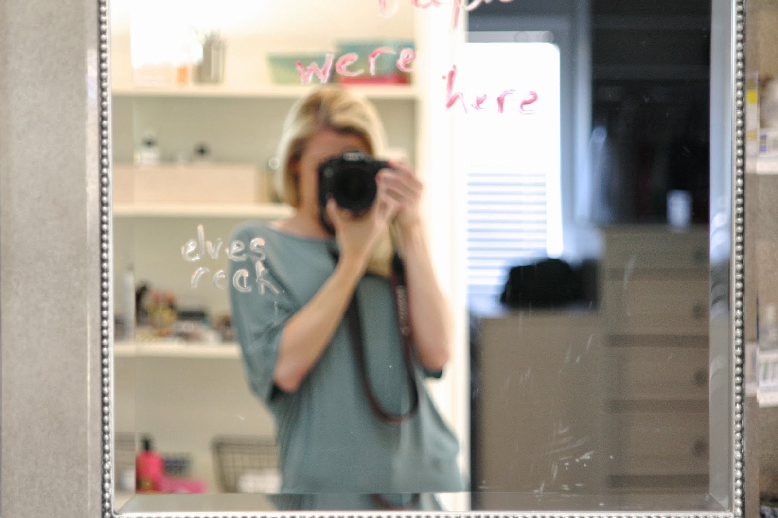 On day 3 the elves found mommy’s lipstick and had some fun in the bathroom…