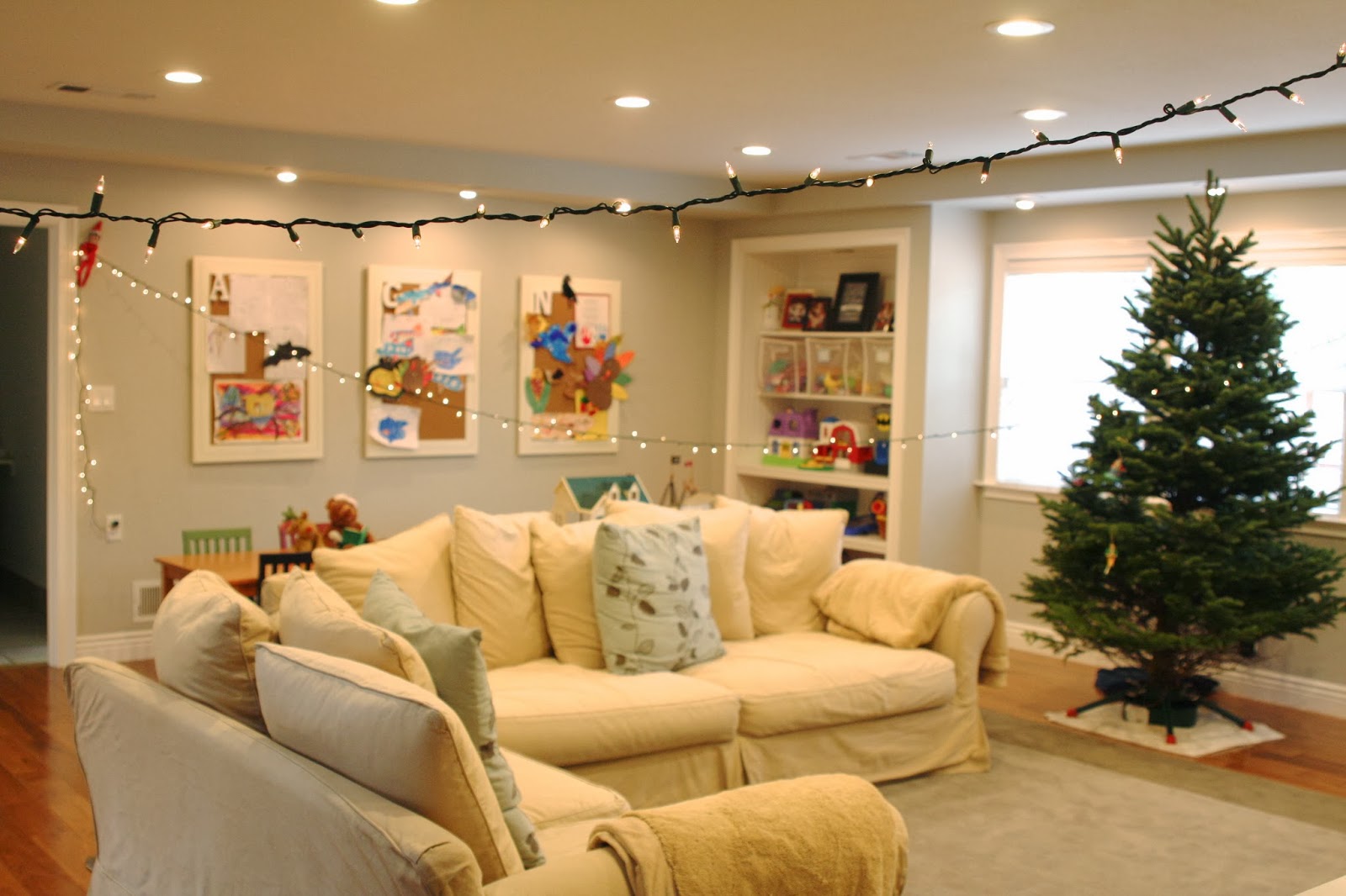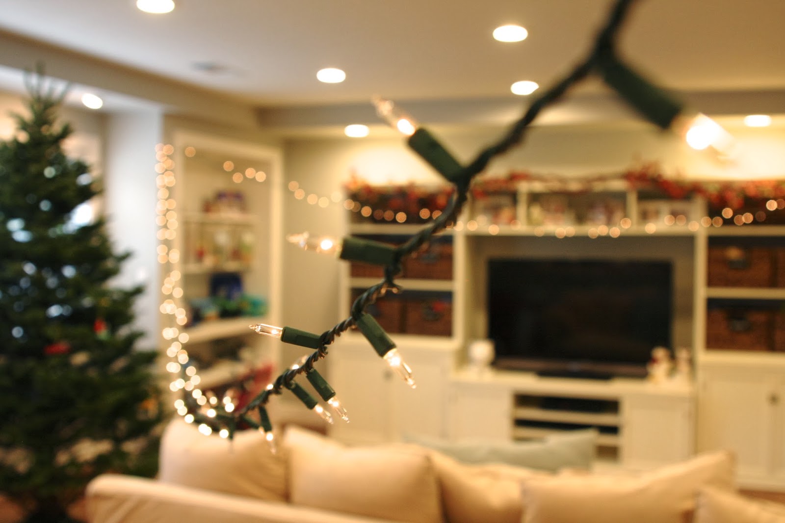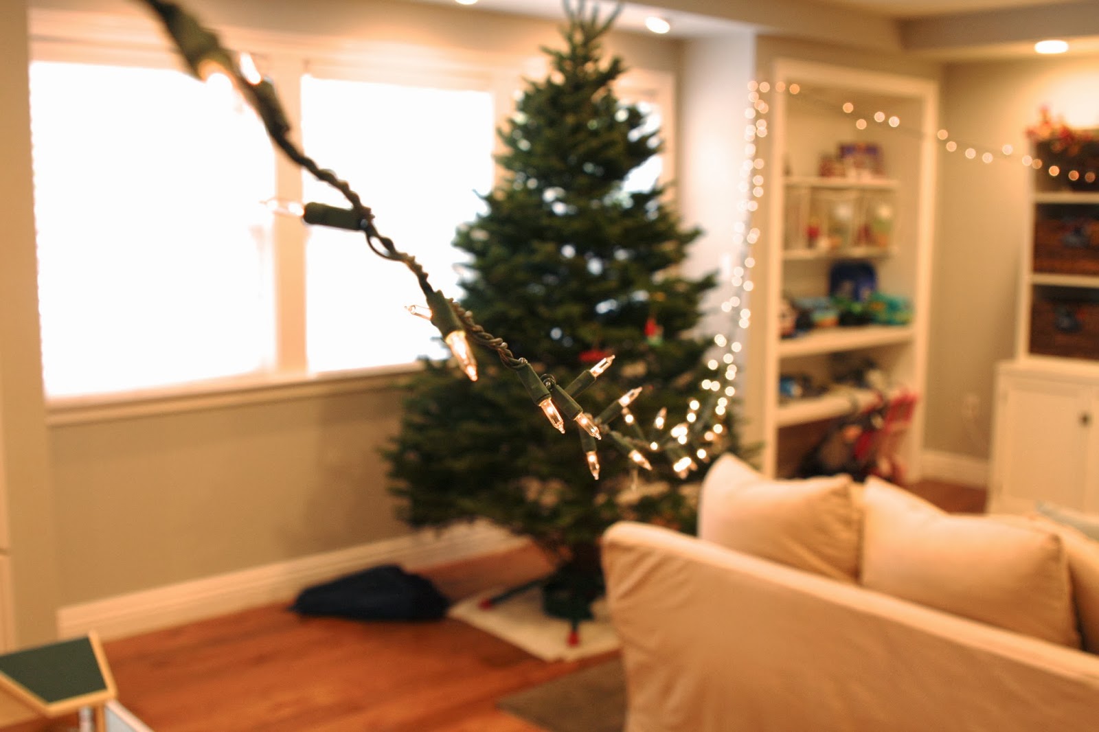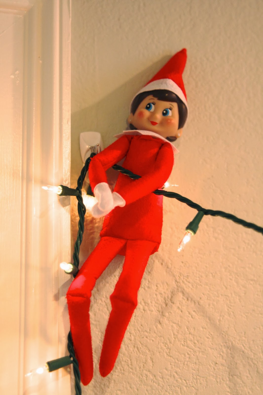 The evening before day 2, I pulled out all of the Christmas decoration bins. Overnight the elves got into the Christmas tree lights and strung a web of lights all over the playroom. It was actually kinda pretty…