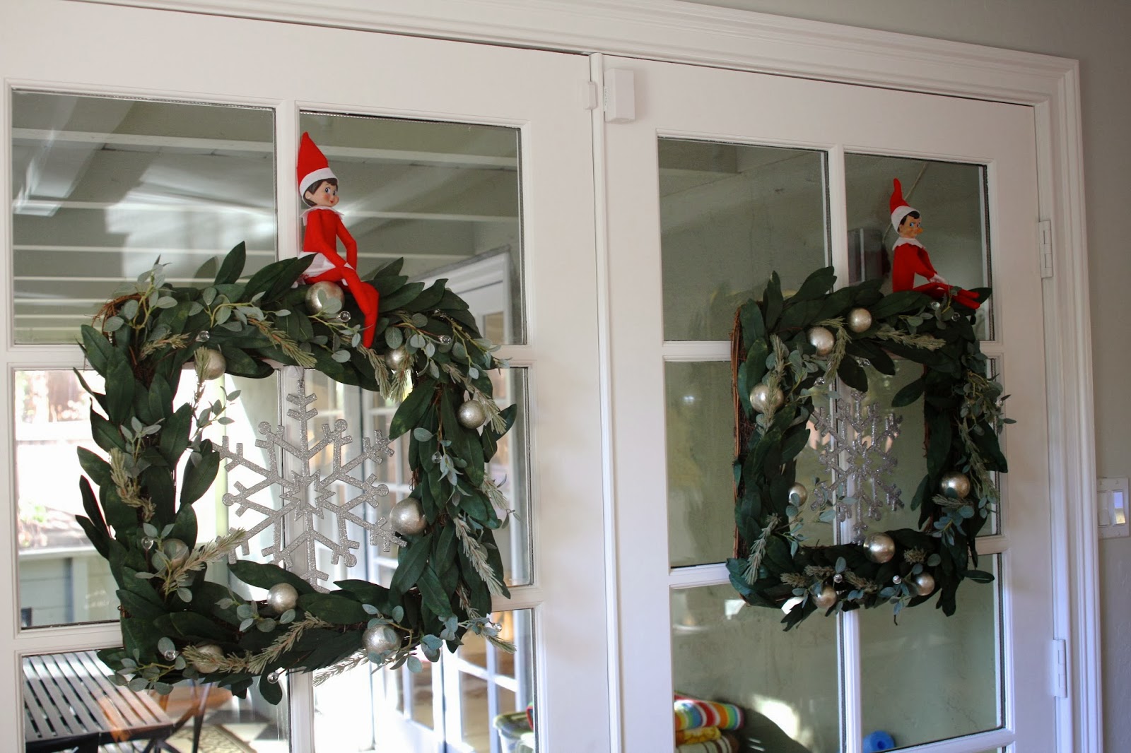 The elves were perched high up nearby on wreaths so they could watch the kids decorate…