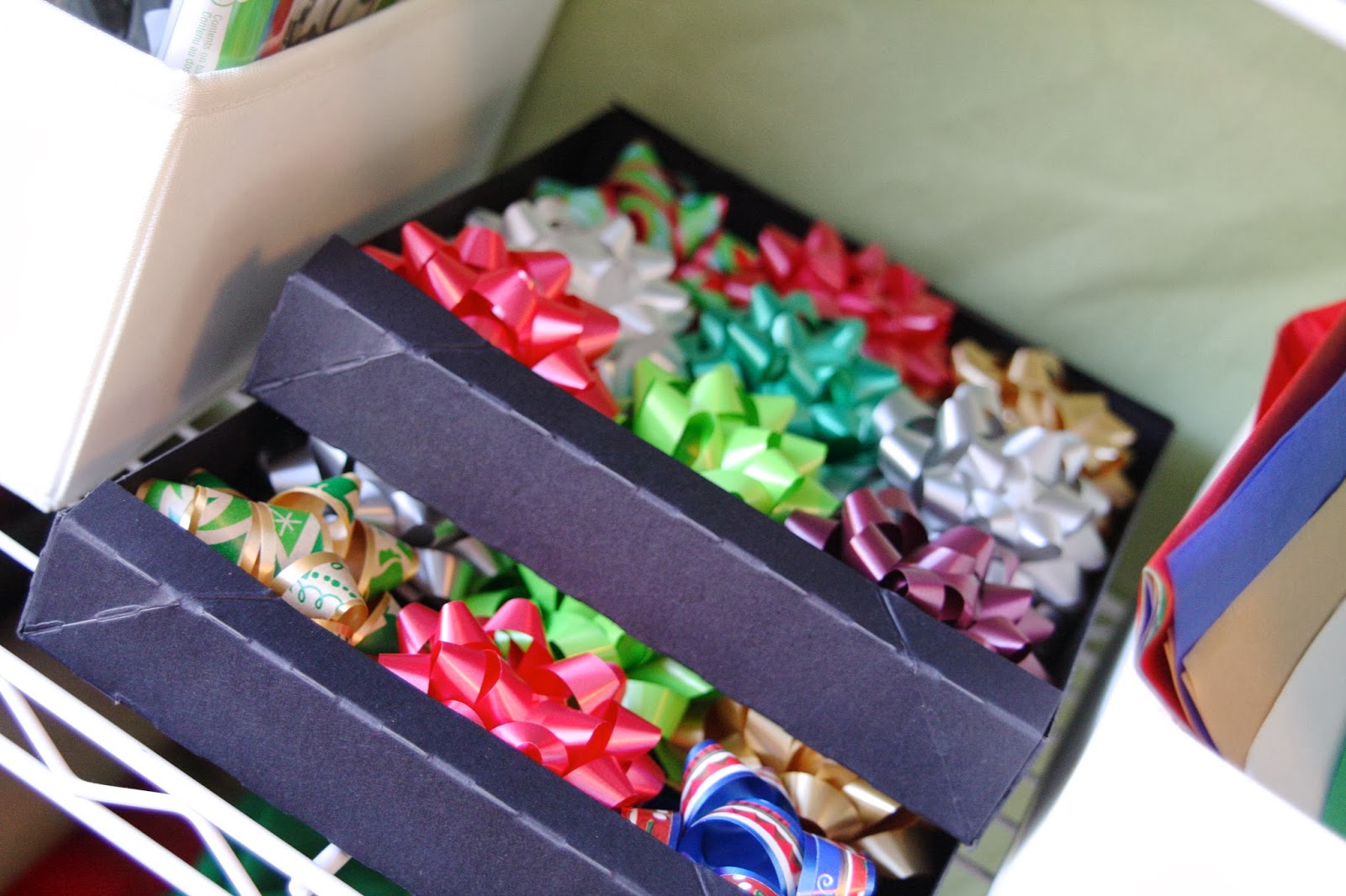 And in between the organizers I have a variety of bows that match some of the wrapping paper…