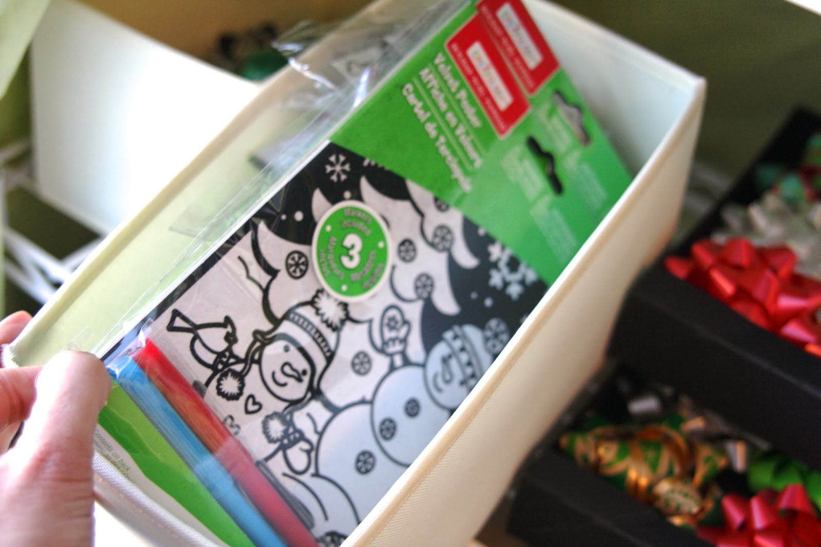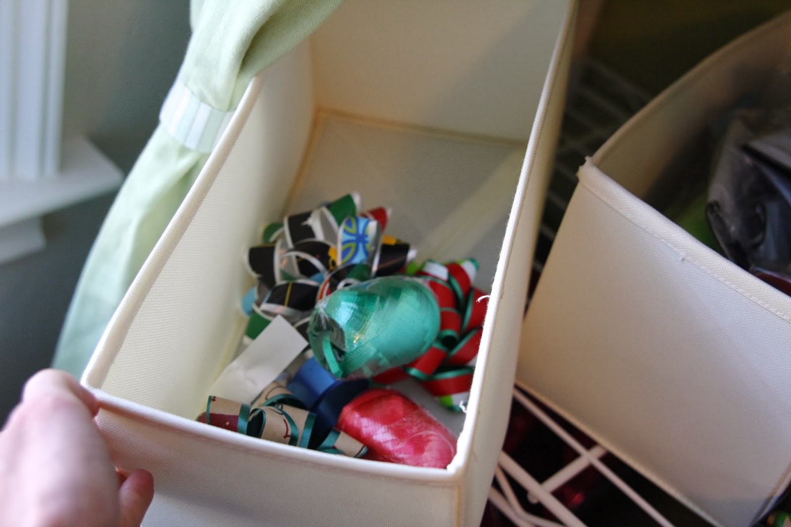 I used these Ikea drawer organizers to sort out other gift wrap items…