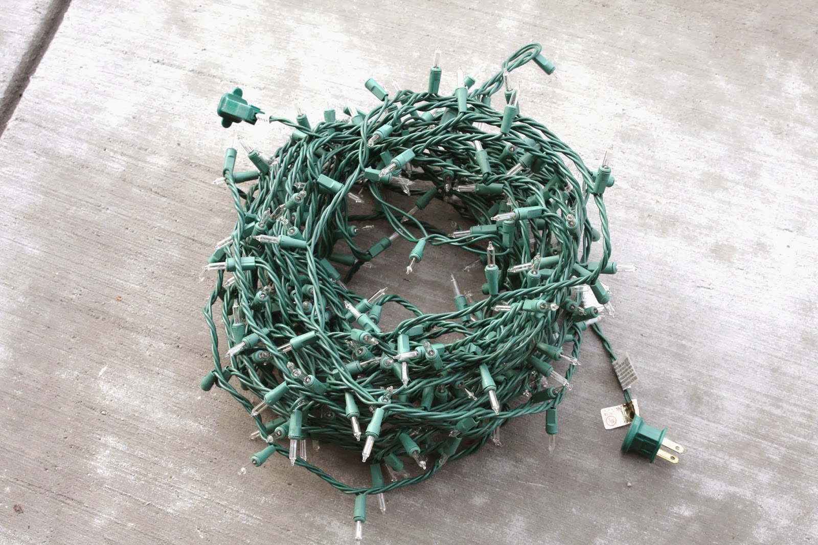 Every year as I remove my lights from the tree and roof lines, I start by wrapping them around my arm into a nice little circle…making sure the male and female electrical ends remain sticking out on either side…