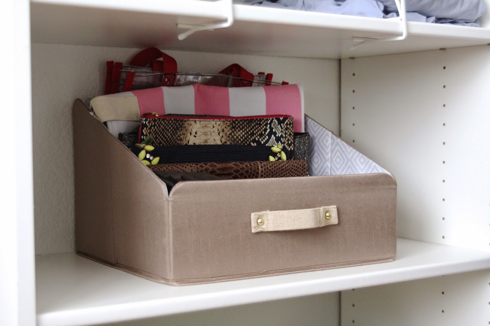 It’s a step-up in fashion from your standard open-topped bins. I have also used a couple in my master closet. For example, I was struggling with my (very small) supply of purses / weekend bags…