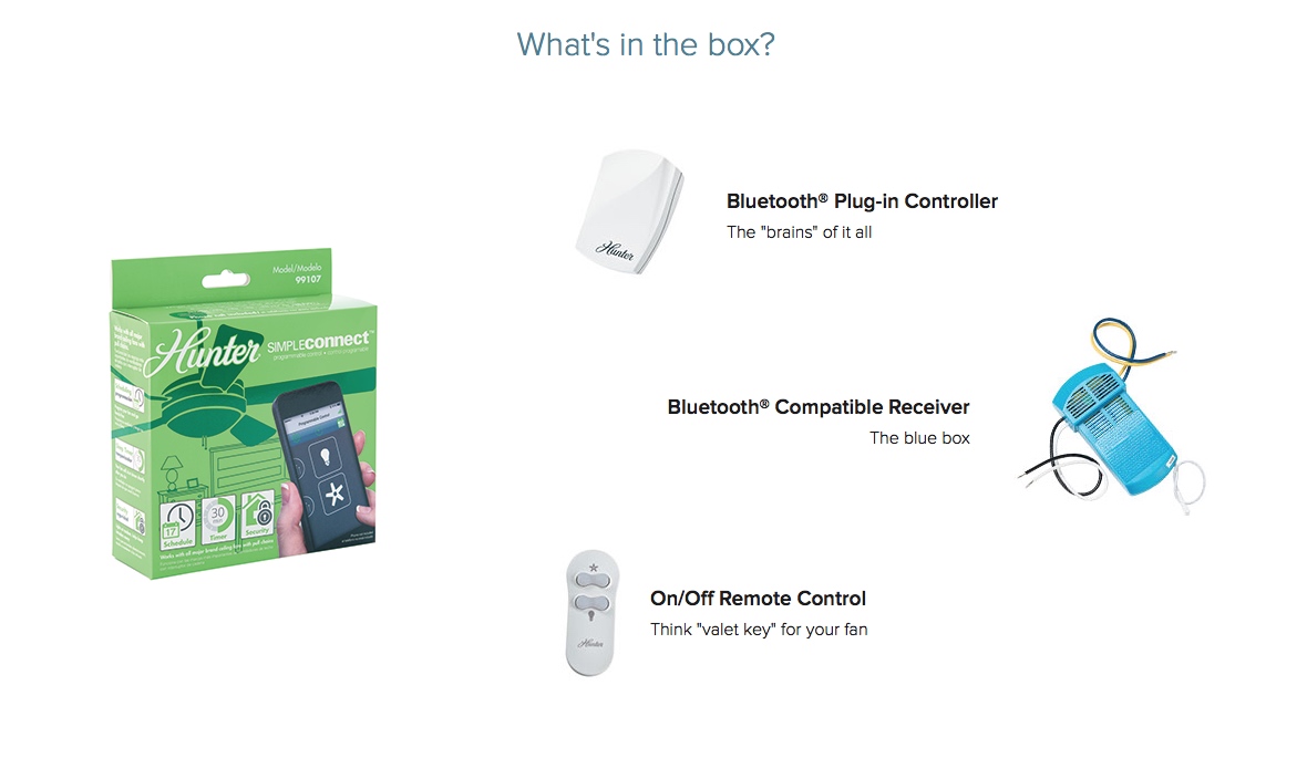 It’s as easy as installing a fan accessory and downloading a free app. That’s it! Oh, and SIMPLEConnect works with all major brands of pull-chain fans. No, Hunter isn’t the mean girl on the playground…they include everyone, no matter how awkward they look. 😉