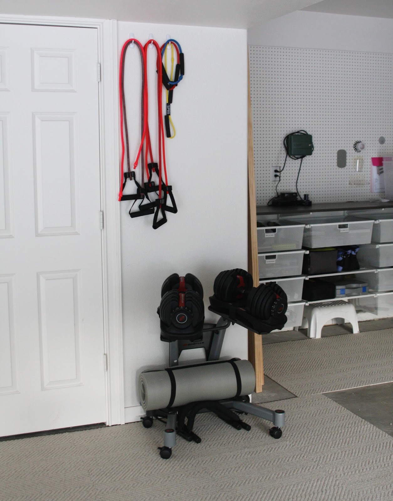 With the flooring completed, I moved my small amount of workout gear into the space…