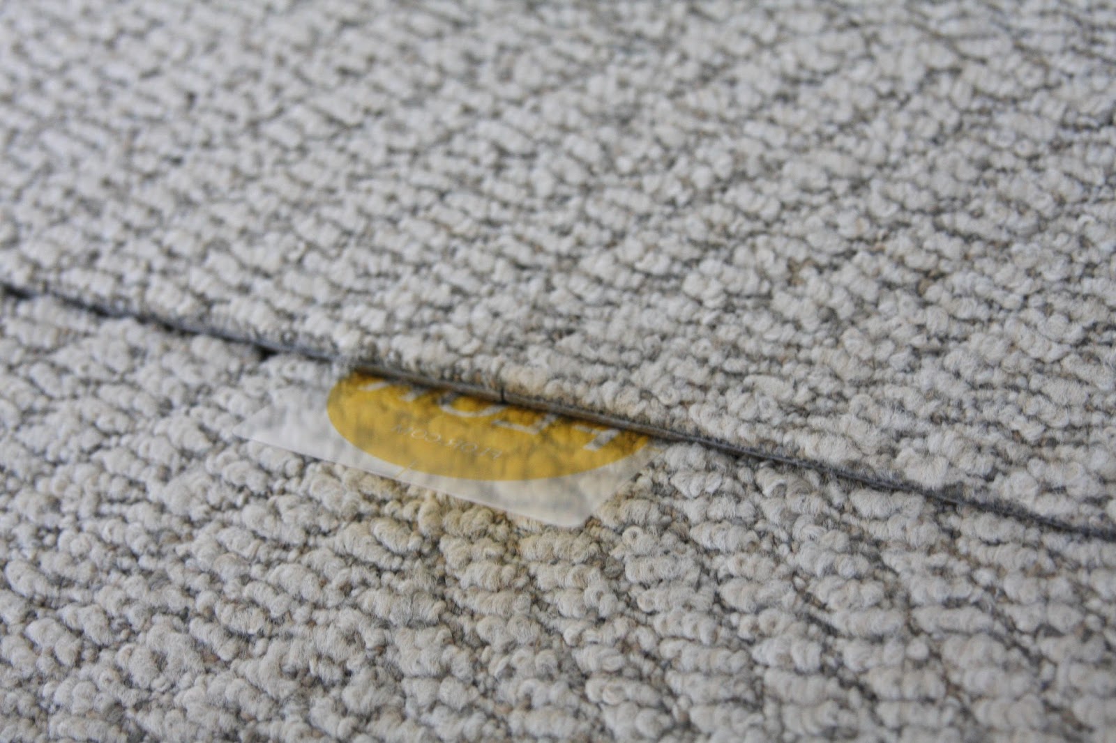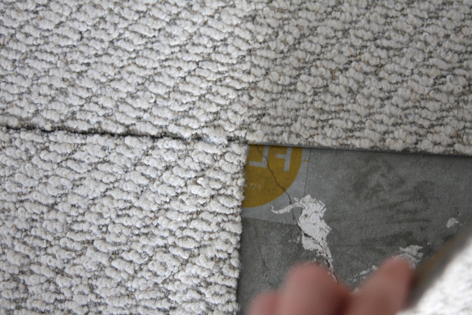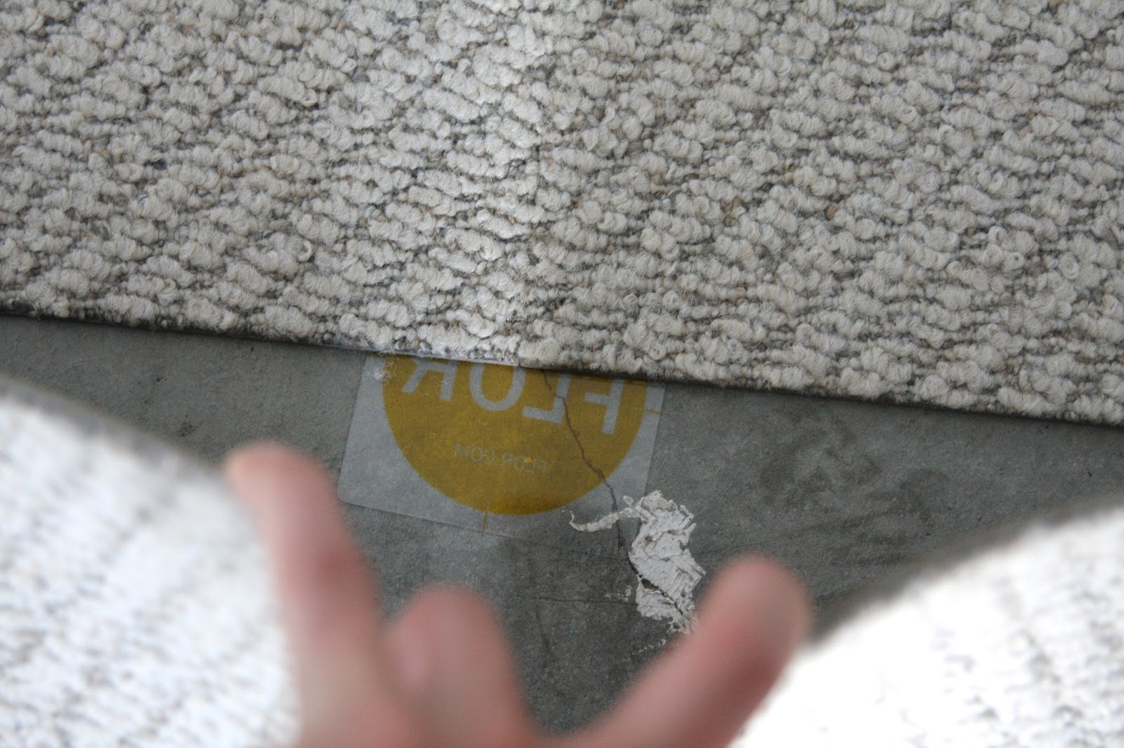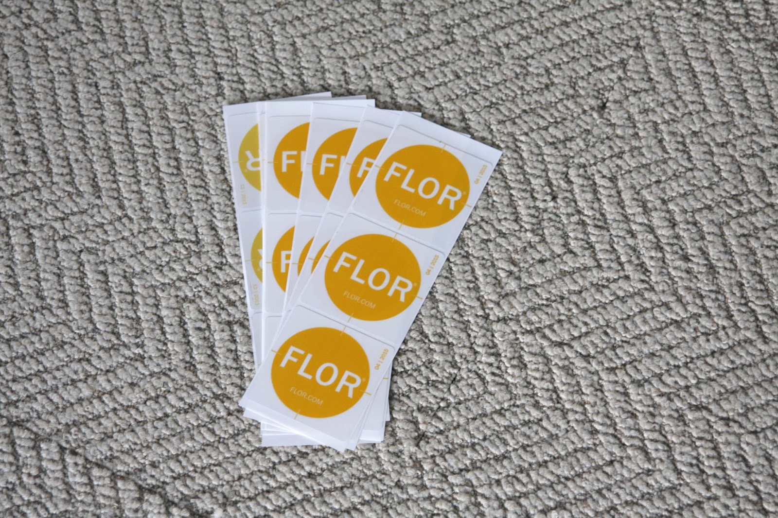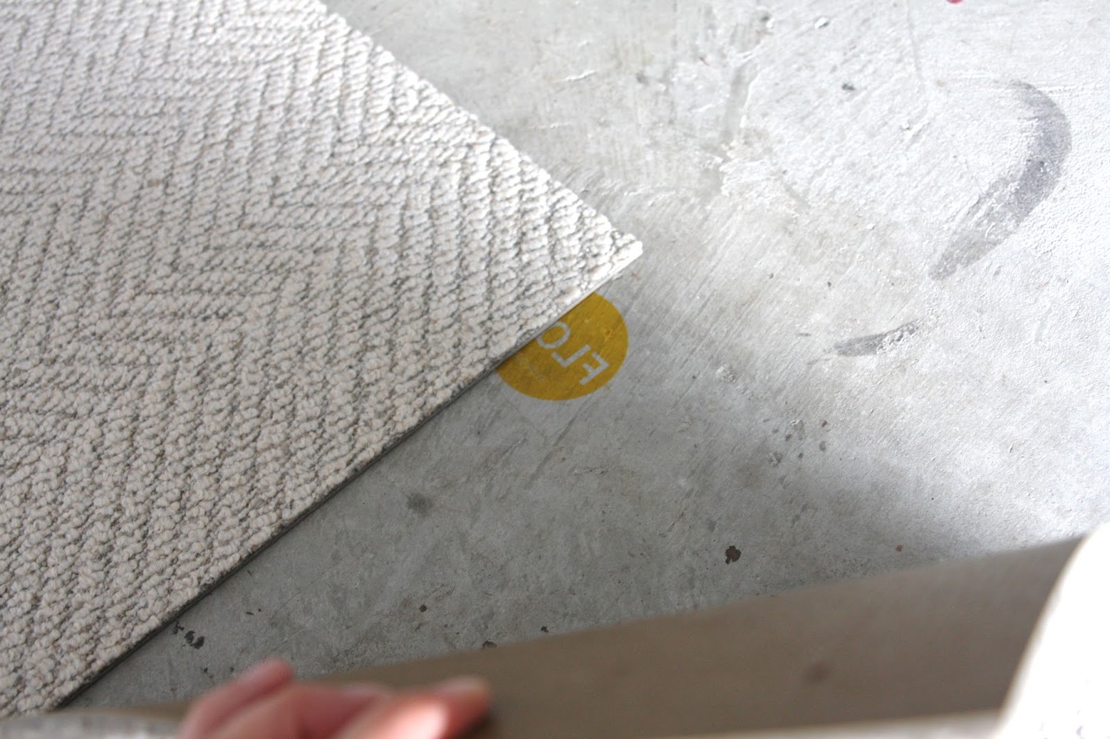 The carpet tiles DO NOT adhere to your floor. They adhere together, which means your flooring won’t be damaged with this easy DIY. Each tile has a special backing that makes them stay put on the floor and these little stickers help marry them together. All you do is place them sticky-side up…