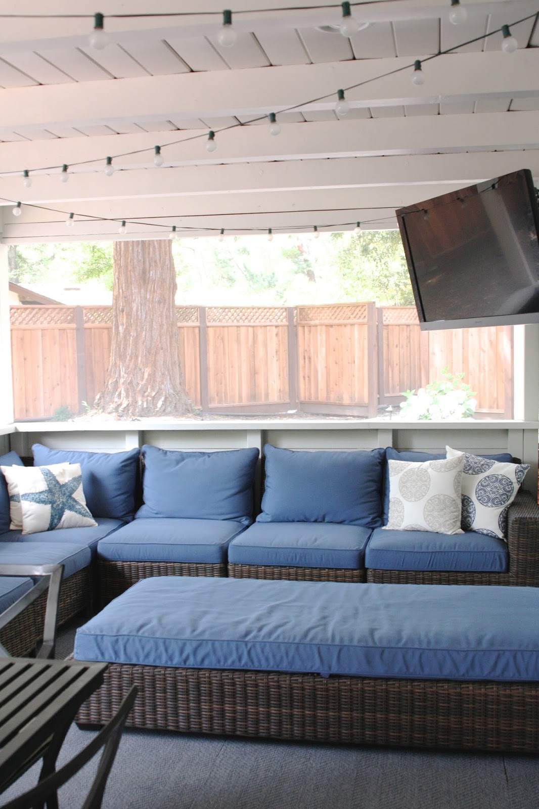 With my garage finally in order, I’ve started chipping away at my list of home improvement and repair projects. Since summer is here, top of my repair list were the screens in the screened-in patio. Last year, I re-did this outdoor patio with a fresh coat of paint, Flor carpet tiles, overhead lighting, a new sectional and mounted tv. Hands down one of the best decisions / projects I took on last year. No question. This room is one of our favorites! Especially during the summer and fall…
